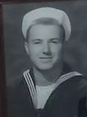 The compartment became an instant swimming pool, and the water was up to my shoulders. I could see the battle lantern that was above the hatch where I needed to get to, and started making my way to that area. When I got there and went through the hatch, there were many of my shipmates trying to get up the ladder to the deck above, as I was. The scuttle hole was all that was open in the hatch to the deck above, and when I reached my turn on the ladder, a very strong arm came through the hole, and pulled me straight up, and out of there. I couldn’t believe the strength it was taking to get one body after another out of the watery grave down below. When I finally got my legs underneath me I headed to the main deck, and it was a slippery mess all the way up. I was sliding on a mixture of blood and water, in every step I took. I reached the hatch to the main deck, and standing there by the emergency generators was Lt. George Golden. He looked at me, and said, “Ron you turn around and go back down there, and make sure everyone got out”. I hesitated, but since it was going to become an order, if I didn’t comply, I did as he said. When I got back to the hatch that I had been pulled through, it was all the way open. I looked into the darkness down below, and could see nothing. I yelled into that deep hole, and did so several times, to which there was no answer. I assumed that everyone who could get out, got out.